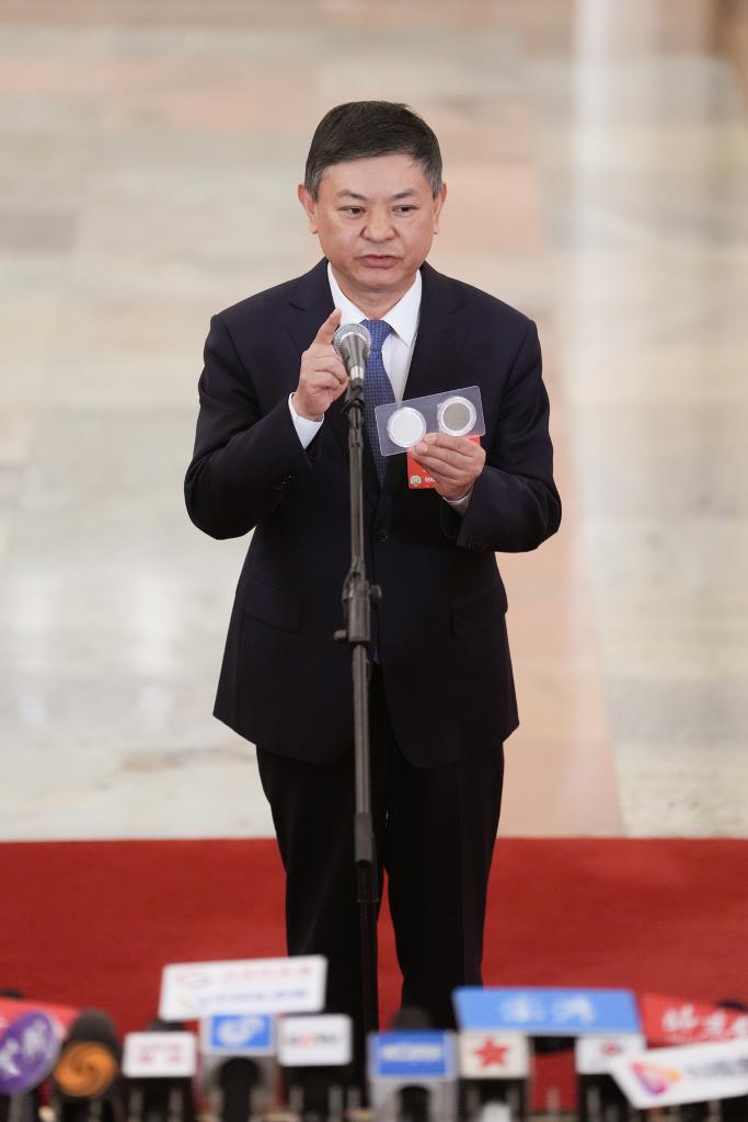2025年3月8日,第十四届全国人民代表大会第三次会议第二场“部长通道”集中采访活动在北京人民大会堂举行。这是生态环境部部长黄润秋接受媒体采访。新华社记者 陈晔华 摄