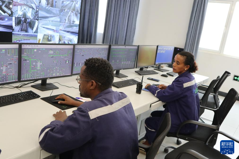 3月5日,当地员工在埃塞俄比亚莱米国家水泥厂的中控室工作。新华社记者 刘方强 摄