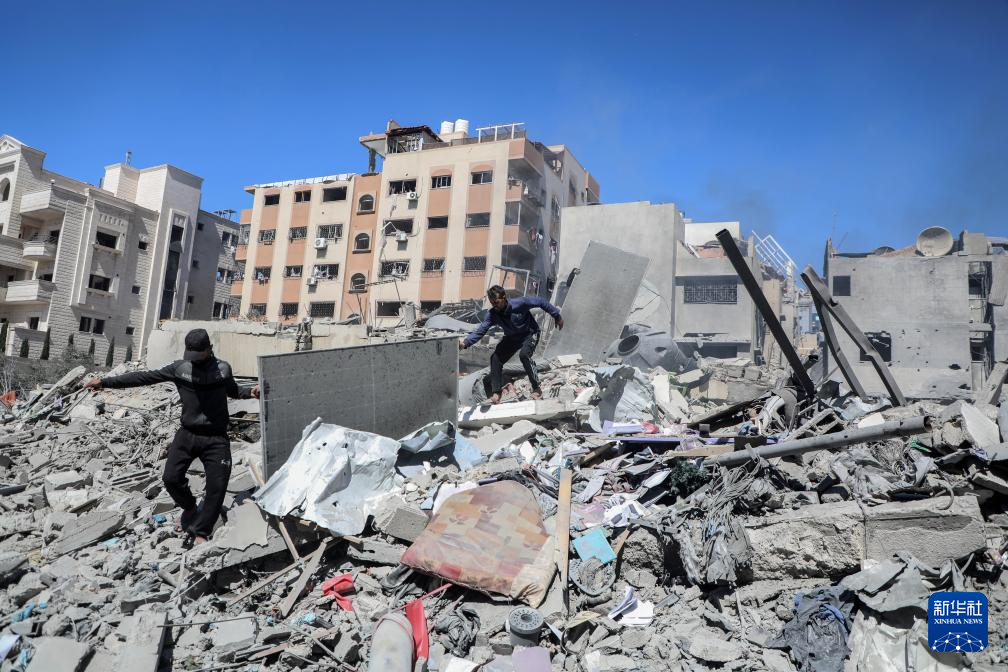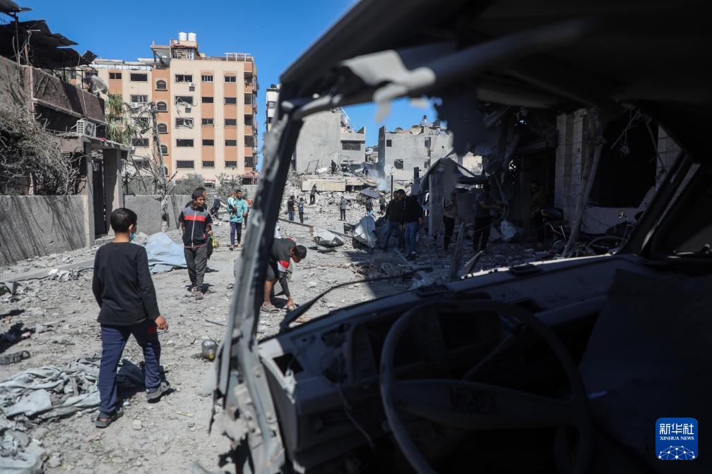 3月19日,在加沙地带北部加沙城的一处社区,人们在以军袭击后的废墟中寻找物品。新华社发(里泽克·阿卜杜勒贾瓦德摄)