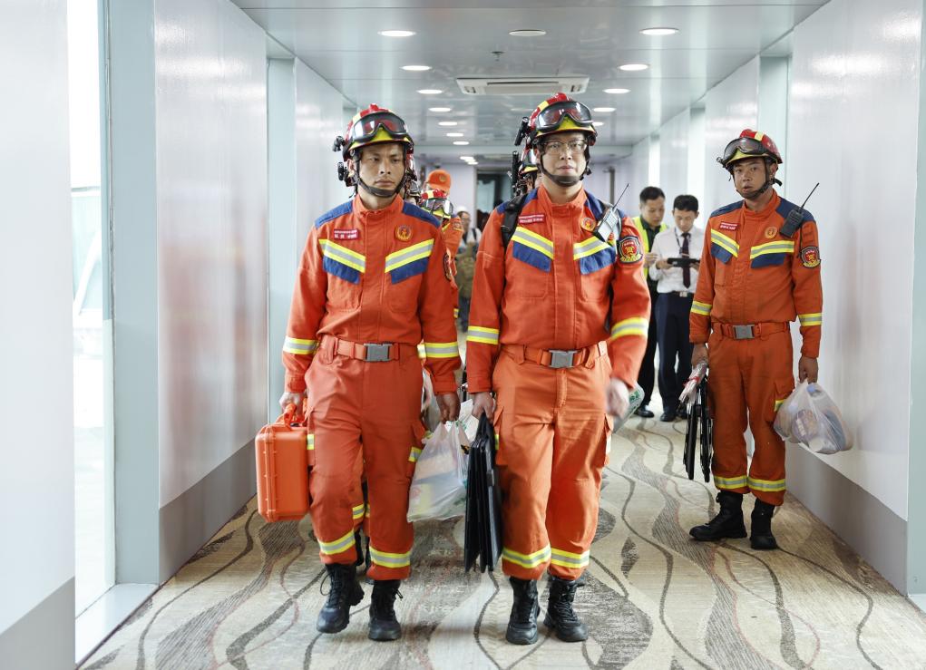 这支37人的医疗队,携带全功能生命探测仪、地震预警系统、便携式卫星、无人机等应急救援物资,已与缅甸消防救援队汇合,一同前往内比都灾区救灾。