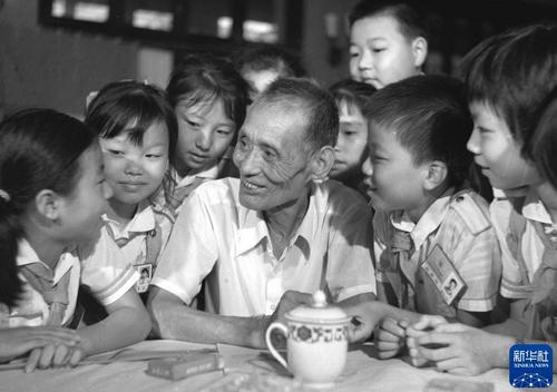 1985年8月,时年68岁的葛振林应邀参加湖南省少先队代表会议,对孩子们进行革命传统教育。 新华社记者 邹云 摄