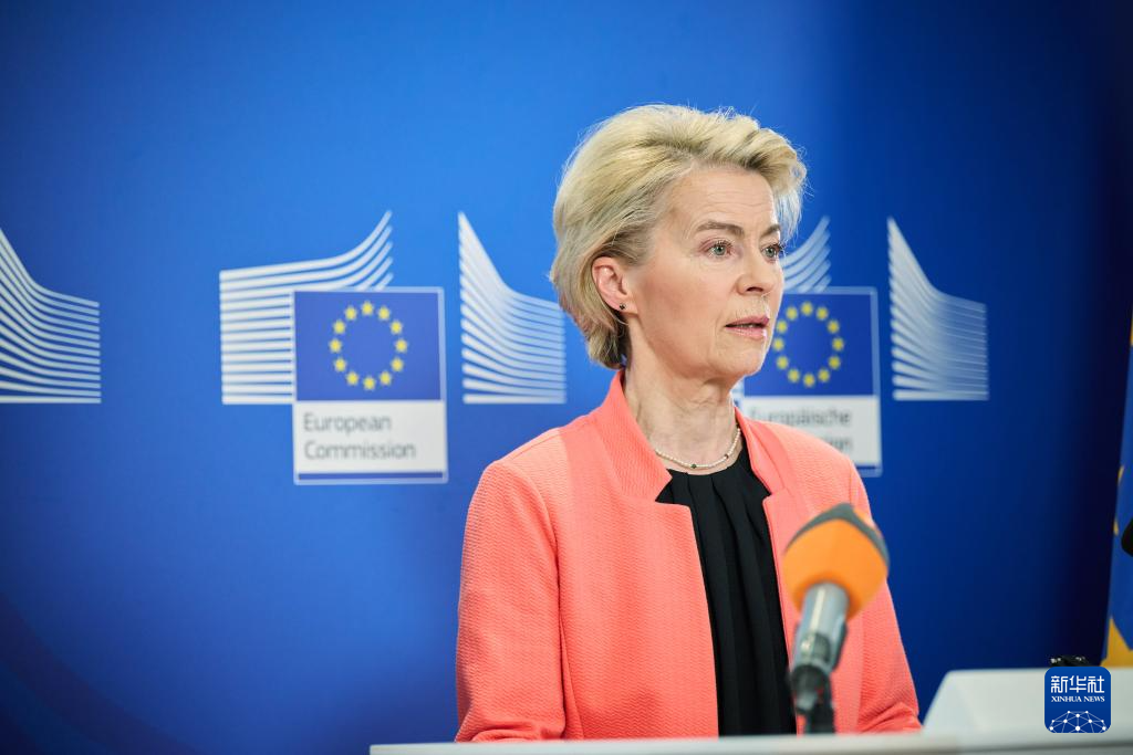 4月3日,在乌兹别克斯坦撒马尔罕,欧盟委员会主席冯德莱恩发表声明。新华社发(欧盟供图)