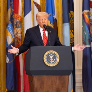 2025年3月20日,美国总统特朗普在华盛顿白宫签署行政令前讲话。新华社记者胡友松摄
