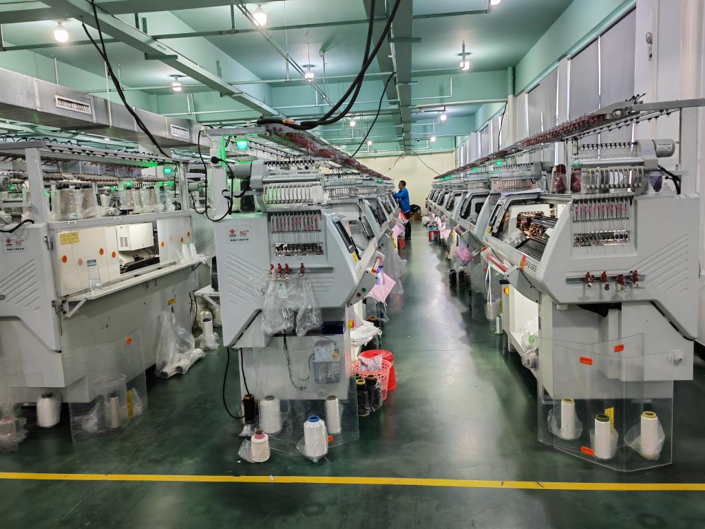 走进企业,热火朝天的生产场景扑面而来:研发部门设计好的鞋面实时传输到后台,由系统自动排好生产计划,车间的100多台飞织机正来回穿梭,一张张鞋面自动完成,经过质检和熨烫等环节即可发往下游企业。