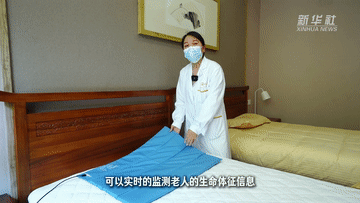 4月8日,在江苏无锡滨湖区一养老院,工作人员为老人用的床铺铺设生命体征监测床垫。这种床垫可以监测卧床老人的呼吸和心率,实时显示数据,方便护理人员及时了解老人情况。