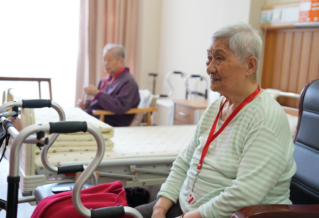 4月8日,在江苏无锡滨湖区一养老院,老人坐在房间里休息。他身后的“智慧床头机”可以把他的呼吸、心率信息实时传送到护士站。