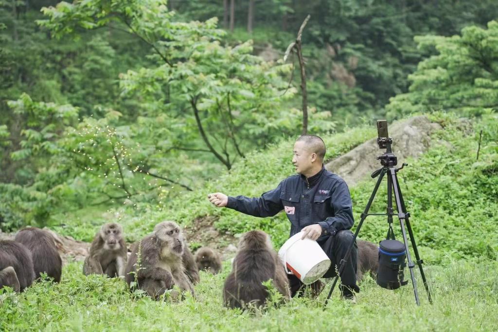 除了植物,唐海与龙池镇的野生动物们也是“老相识”。因为常年和藏酋猴打交道,他不仅能认出许多藏酋猴,还熟知它们的习性。“你看这只猴子嘴角有个肉瘤,是前两年争猴王时受伤后长出来的,我叫它‘侦察兵’,因为他们这个种群比较胆小,每次都要它先下山看看有没有其他种群过来,才会呼唤伙伴。”唐海指着猴群中的一只说。