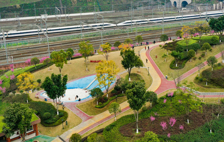 阳春三月、百花争艳,两江新区木桃路社区公园因靠近铁路,形成了“开往春天的列车”的独特景观,引来不少市民拍照。“过去这里是个建筑弃渣场,社区周边没有休闲的地方。经改造变成了高低错落的山地公园,儿童乐园、健身步道、饮水等设施都有,我们现在散步健身有了好地方。”住在附近的邹女士满意地说。