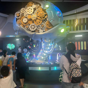 5月1日,在深圳科学技术馆,观众参观“机械大脑”。新华社记者 陈宇轩 摄