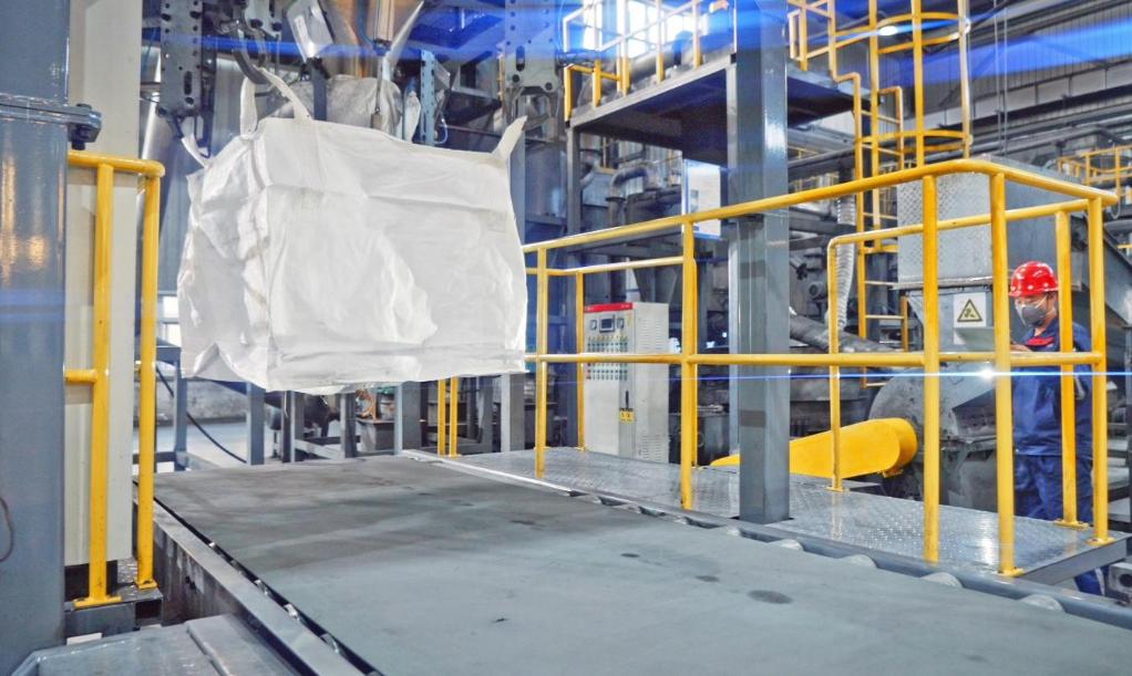 图为员工在自动称重下料环节中工作(视频截图)。新华社发
