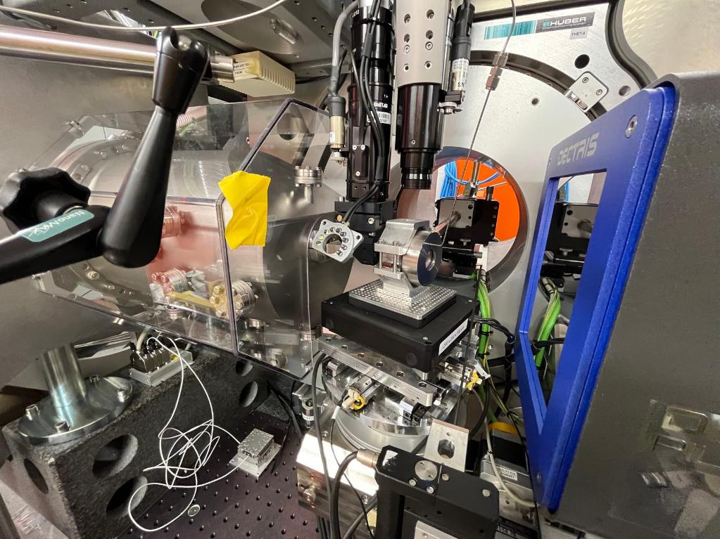 这项研究使用了瑞典MAX IV(最新一代同步辐射光源)的NanoMAX线站提供的纳米聚焦X射线,图为射线聚焦装置、样品台、光子计数探测器。受访者供图