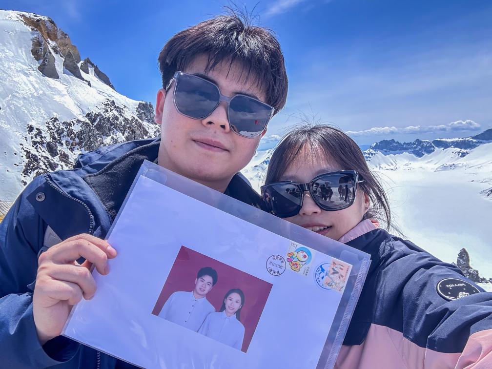 “我们俩本身就爱旅行,‘全国通办’政策实施后,我们想领一个‘与众不同’的结婚证。”梁森说,一路上,他们尝丹东小吃、过虎山长城、爬巍峨雪山,仿佛在演一场专属于自己的“公路爱情片”。
