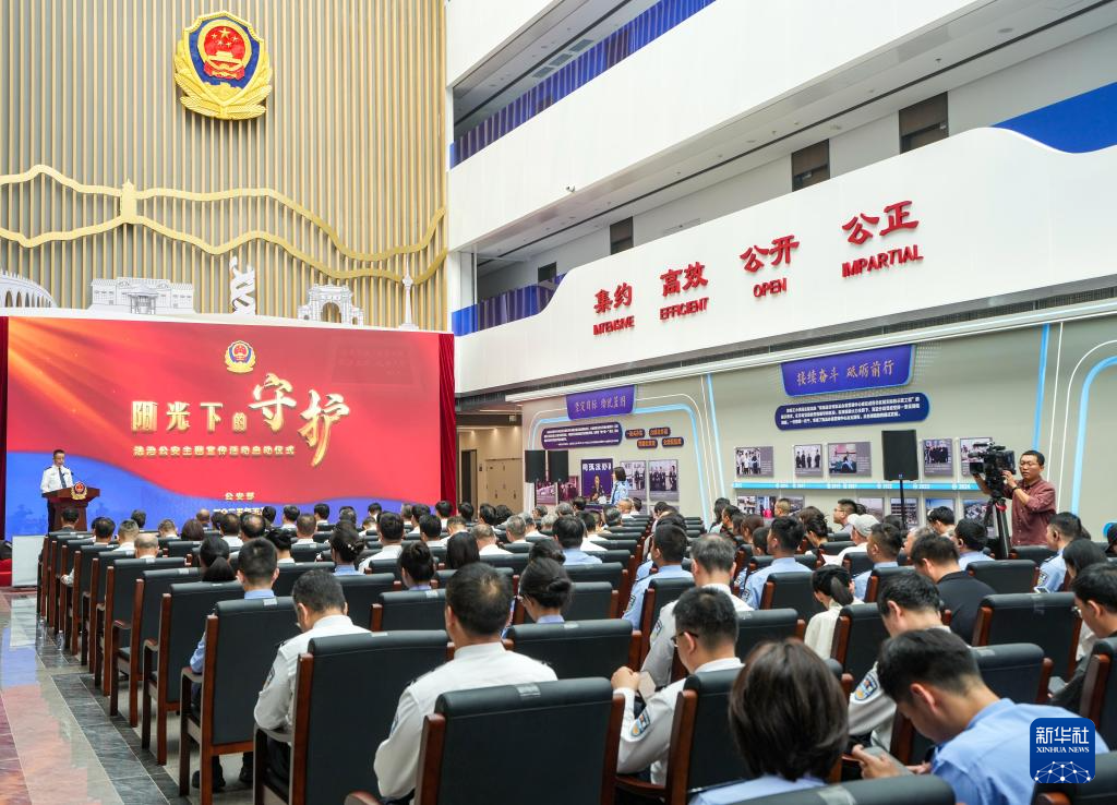 这是5月21日拍摄的启动仪式现场。5月21日,“阳光下的守护”法治公安主题宣传活动在北京启动,活动将充分展示公安机关学习宣传贯彻习近平法治思想、推进法治公安建设举措成效,集中展现新时代新征程公安队伍的新担当新作为,奋力推进公安工作现代化。新华社记者 陈晔华 摄