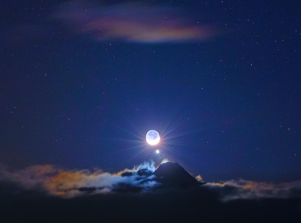 2023年3月24日在云南梅里雪山拍摄的金星伴月。(王晋 摄)