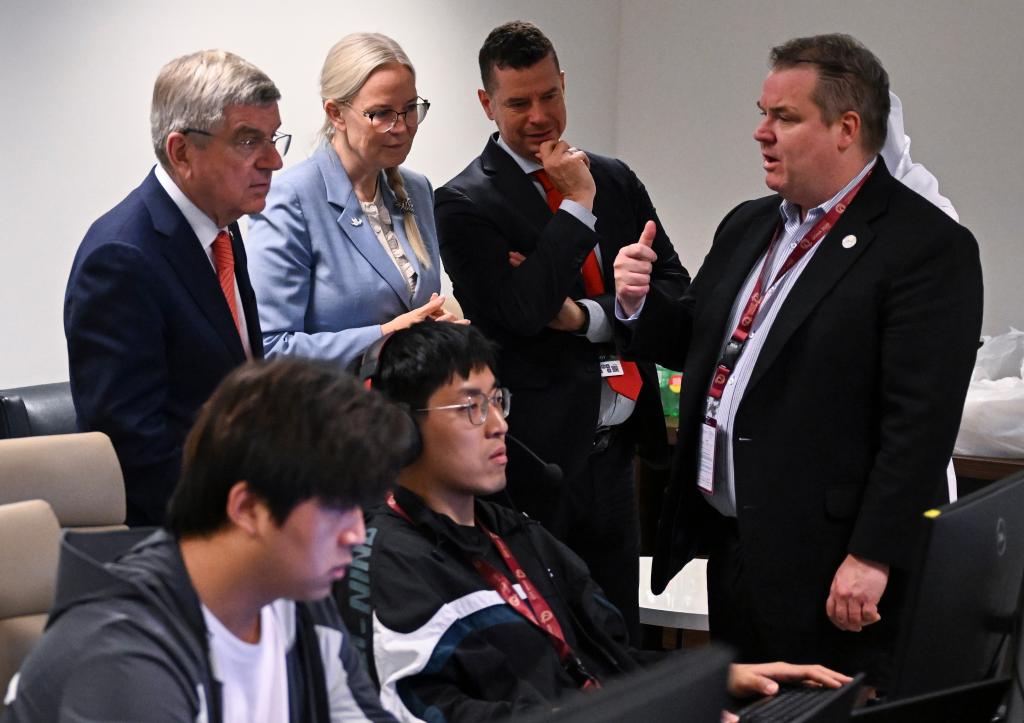 国际奥委会主席巴赫亲临赛事并考察工作区运行情况,当巴赫一行经过TTR办公室,目光被室内的科技设备吸引,当时主办方相关运管人员尚未就位,巴赫便前往赛场。大约半小时后,巴赫再次归来,同行的还有国际乒乓球联合会(ITTF)主席佩特拉·索林、国际乒联集团首席执行官兼世界乒乓球职业大联盟(WTT)董事史蒂夫·丹顿。这一次,他们详细询问TTR系统的运行原理,对这套系统十分关注。