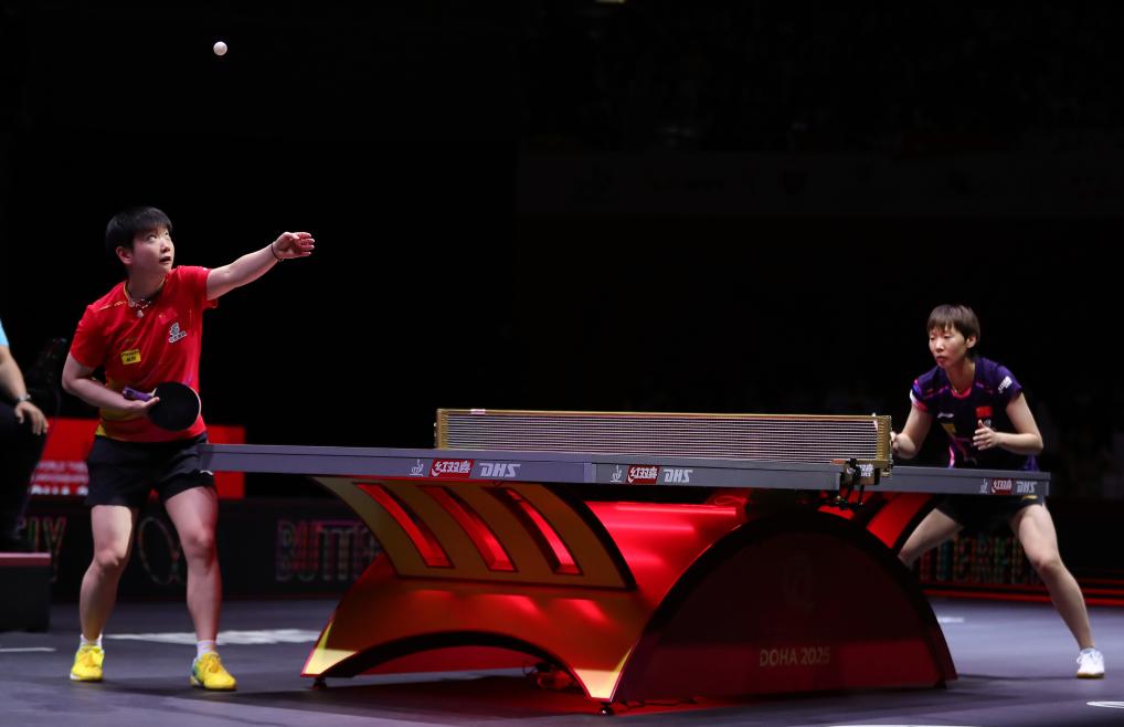 多哈世乒赛现场,光影流转间,竞技激情与科技魅力交织碰撞。