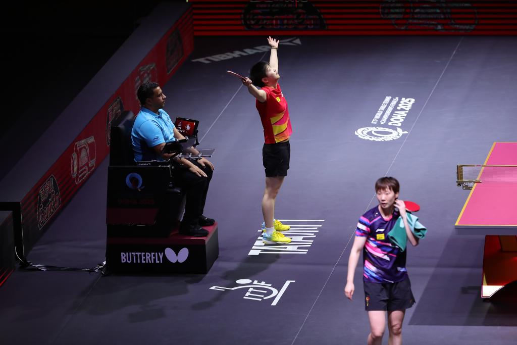 我曾在东京奥运会场边记录孙颖莎初登大赛的锐气,也在德班世乒赛见证她首次问鼎女单。如今在多哈,我又一次站在赛场边,看她从稚嫩走向成熟,从追赶者变成被追赶者,看她一次次挥拍、一次次跃起、一次次高高举起奖杯,把国乒的旗帜一次次稳稳插在最高领奖台上。