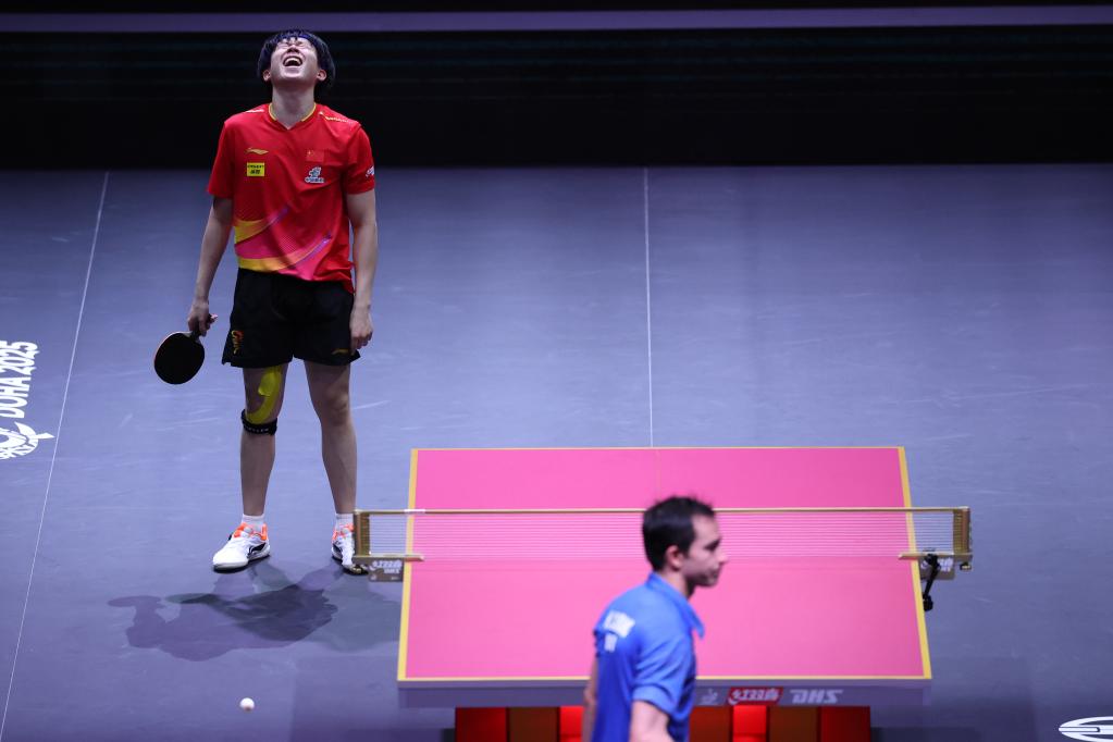 5月25日,多哈,45摄氏度高温,2025世乒赛决赛硝烟正烈。上万名来自中国的球迷让卢赛尔体育馆人声鼎沸,他们手举五星红旗,热情如同沙漠中的热浪。一名当地人和我说:“我从来没见过这么多的中国人!”