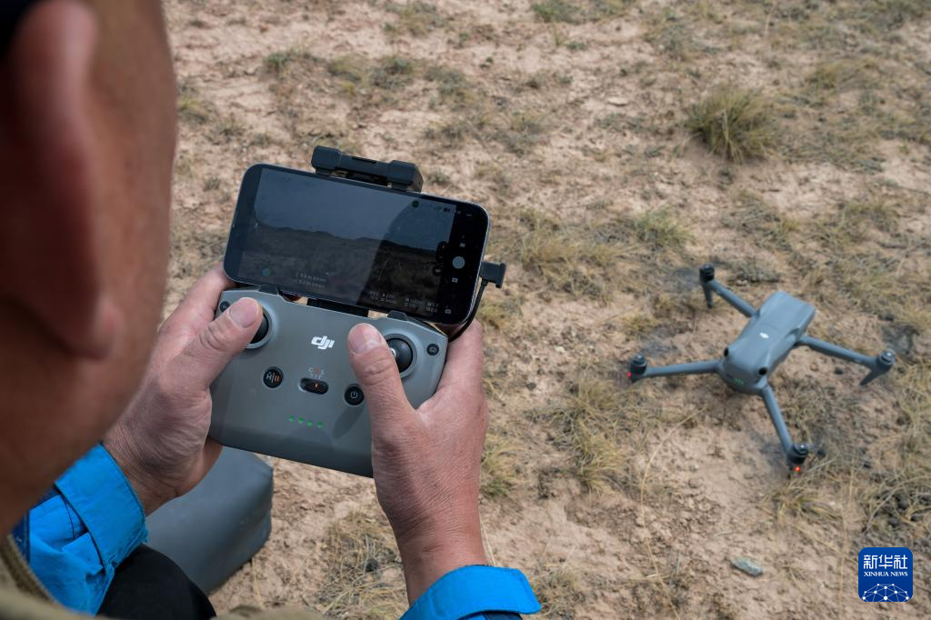 5月12日,李世翔在海原县甯韦堡巡查时使用无人机拍摄照片。