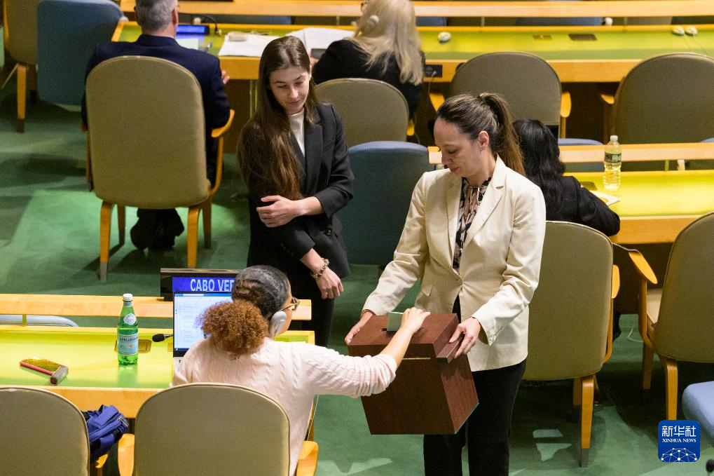 5月27日,在位于纽约的联合国总部,联合国大会投票补选国际法院法官。新华社发(联合国供图/曼努埃尔·埃利亚斯摄)