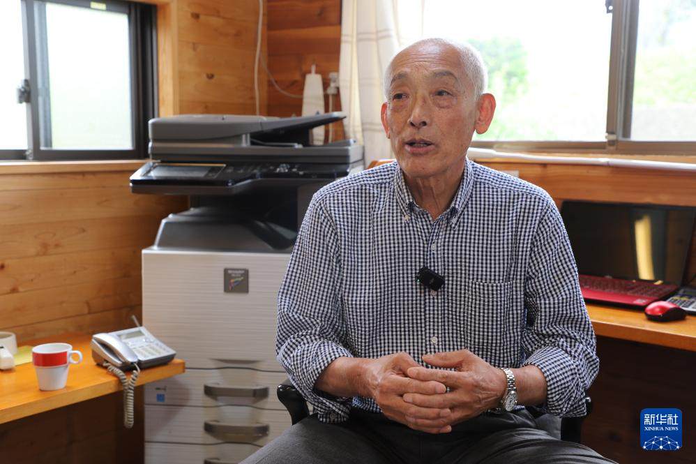 5月19日,在日本长野县驹根市,竹上胜利在家中接受新华社记者采访。新华社记者 陈泽安 摄