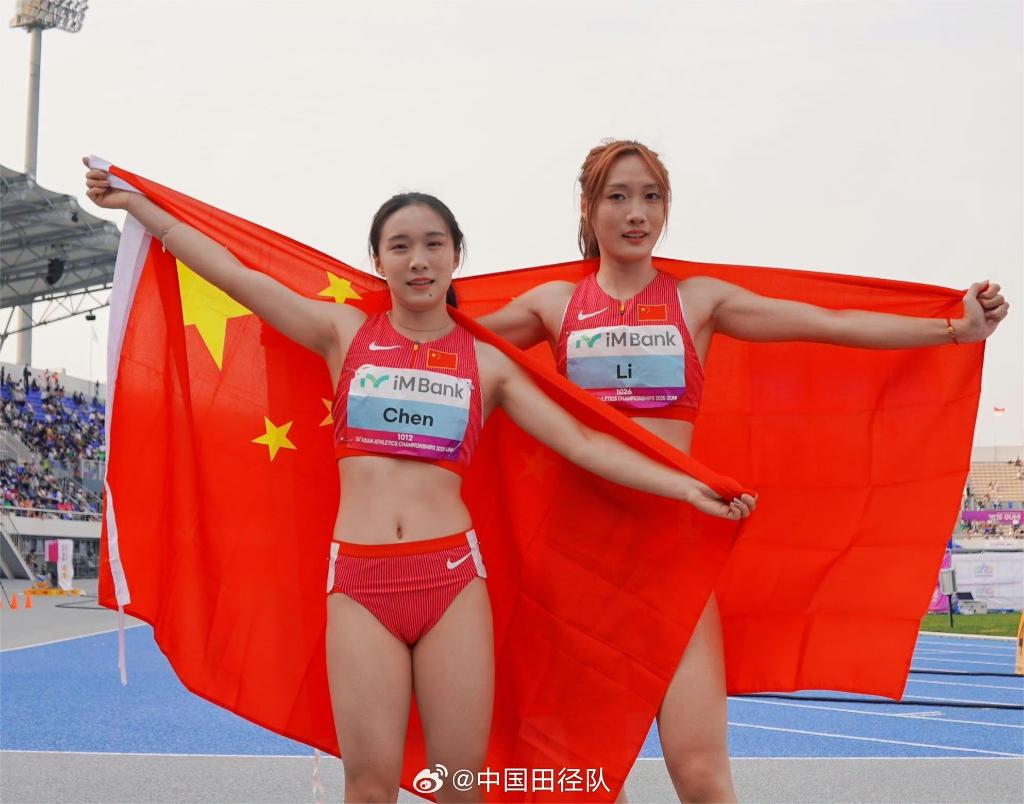 陈妤颉(左)和李玉婷在比赛后。图源:中国田径队官方微博