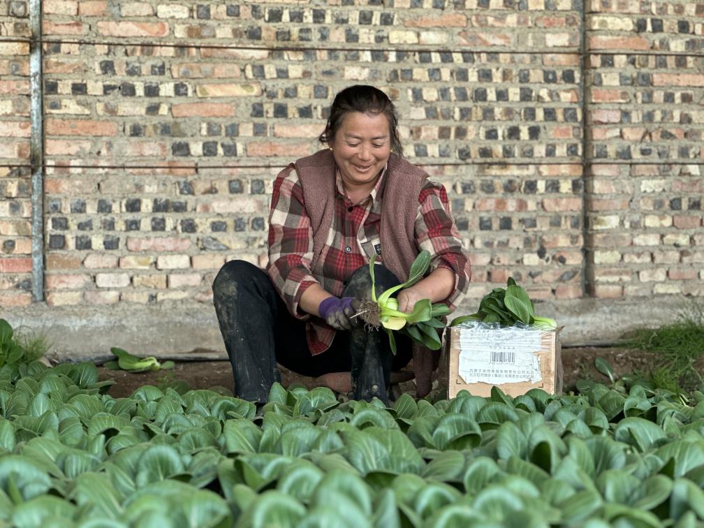 在西宁市湟中区多巴镇玉拉村,农户正在采收蔬菜。新华社记者张子琪 摄