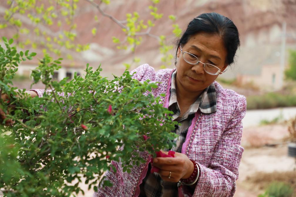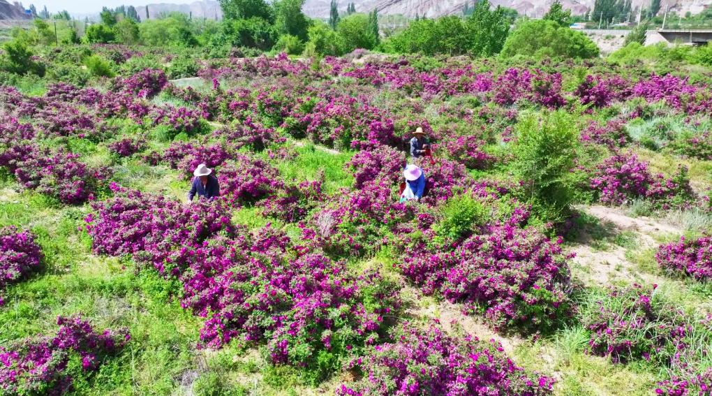 当地人正在采摘苦水玫瑰。新华社发(童张伟摄)