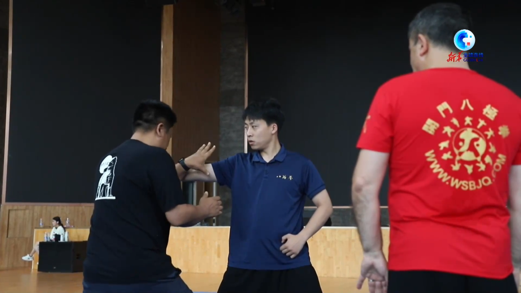 国家级非物质文化遗产代表性项目沧州武术(孟村八极拳)省级代表性传承人吴大伟与他们切磋武艺、交流文化。