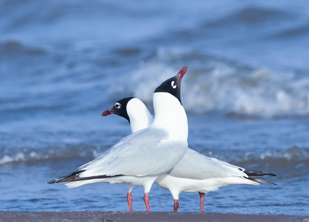 清晨,阳光洒向天津渤海湾寨上街岸段,海面波光粼粼。几只遗鸥或低空翱翔,或悠闲栖息。蔡家堡村渔民刘翠波驻足拍照,镜头里白鹭正低头啄食,与海天金辉相映成趣。