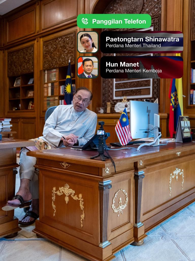 6日,2025年东盟轮值主席国马来西亚总理安瓦尔在社交媒体上说,自己已同泰国总理佩通坦和柬埔寨首相洪玛奈接触,敦促泰柬双方继续保持克制,采取措施缓和紧张局势,共同寻求全面的解决方案。