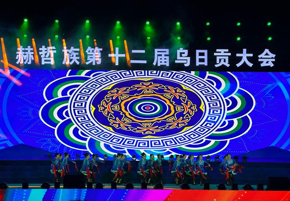 赫哲族第十二届乌日贡大会开幕式现场。新华社记者 戴锦镕 摄