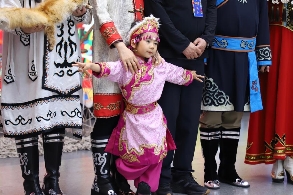 他们手持绘有精美图腾的桦皮鼓,鼓点由缓至急,仿佛重现了先祖在惊涛骇浪中搏击的壮阔场景,将赫哲族与自然共生千年的故事娓娓道来。