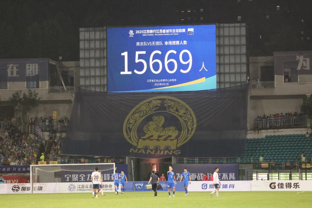 ↑6月1日,在2025年江苏省城市足球联赛第三轮南京队对阵无锡队的比赛中,共有15669名球迷前来观赛。