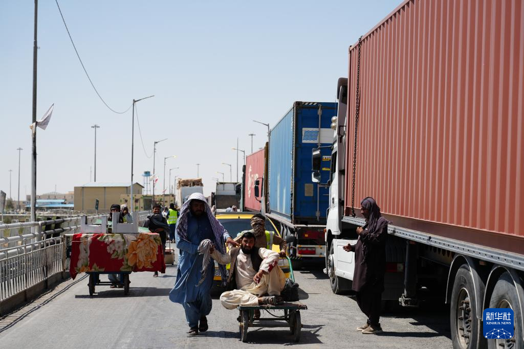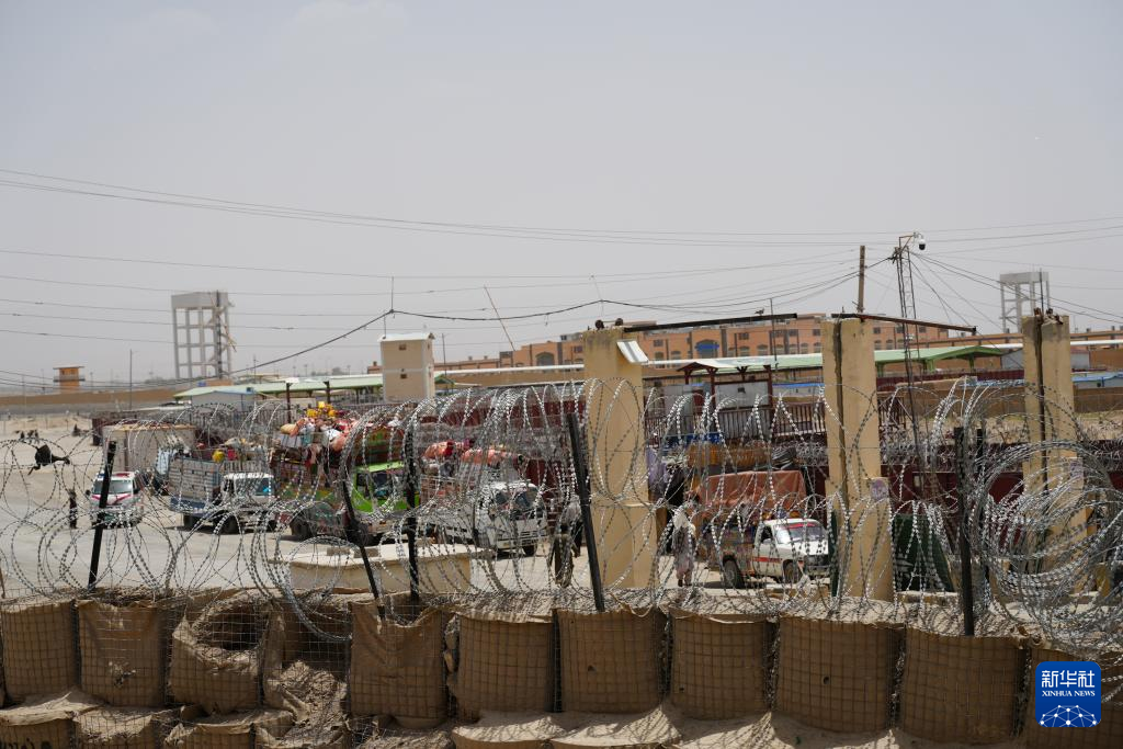 6月15日,在阿富汗坎大哈省首府坎大哈市与巴基斯坦接壤的斯平布尔达克口岸,货车排队从巴方入境阿富汗。新华社记者 李昂 摄