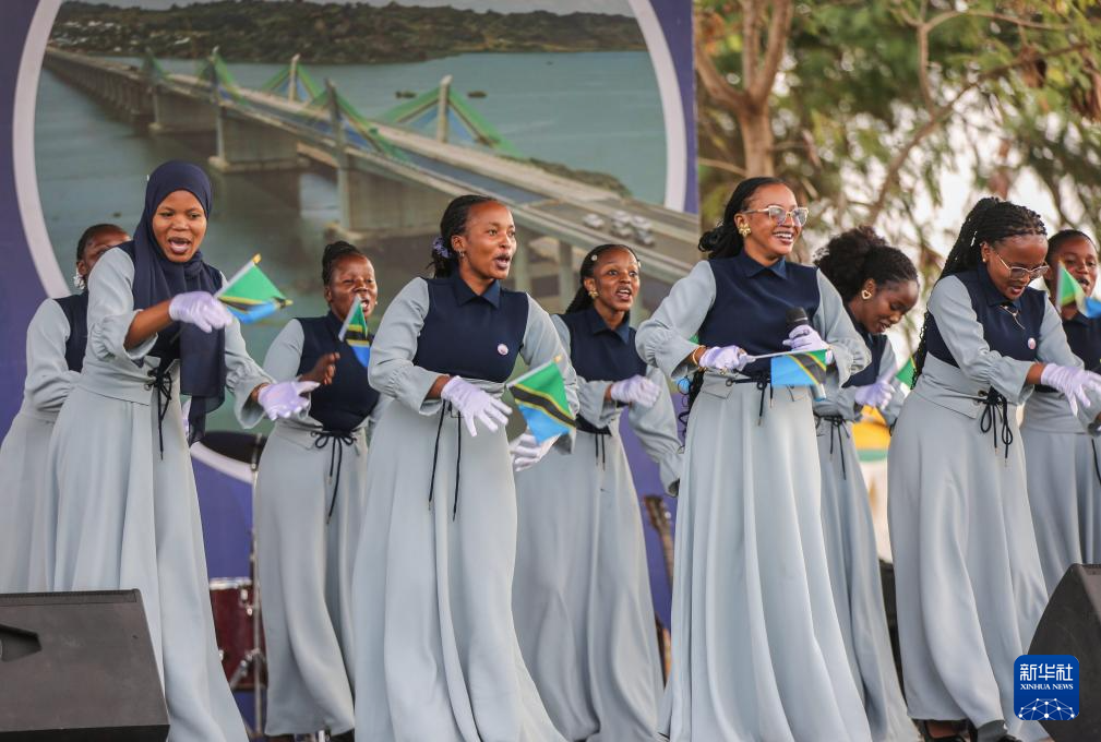 6月19日,在坦桑尼亚姆万扎省,演员们在马古富力大桥通车仪式上表演歌舞。新华社发(赫尔曼·埃马纽埃尔摄)