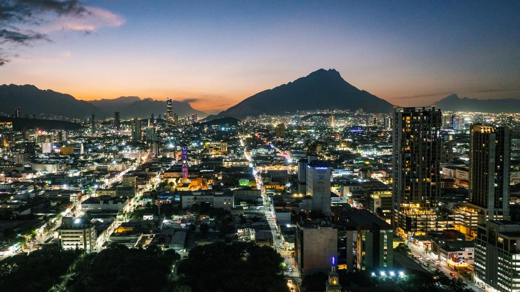 这是2024年12月10日拍摄的墨西哥第三大城市蒙特雷的城市夜景(无人机照片)。新华社记者李木子摄