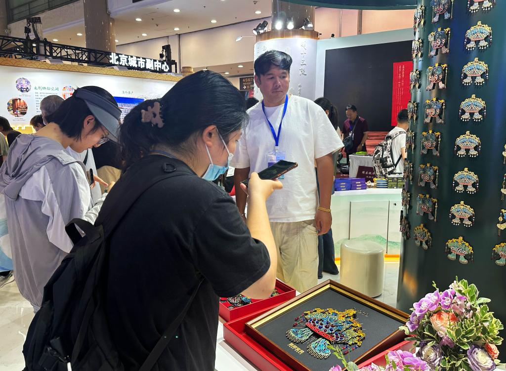 图为观众在2025北京国际文旅消费博览会上了解展品。新华社记者 杨淑君 摄