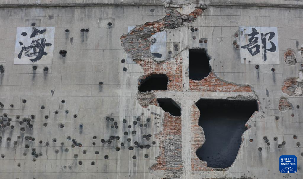 这是四行仓库西墙上的炮弹孔和枪弹孔(2021年9月17日摄)。新华社记者 王翔 摄