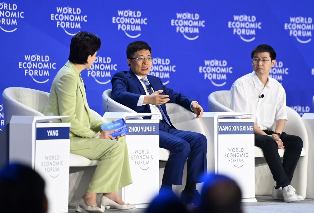 6月26日,第十六届夏季达沃斯论坛举行“解读中国AI发展路径”分论坛。新华社记者 赵子硕 摄