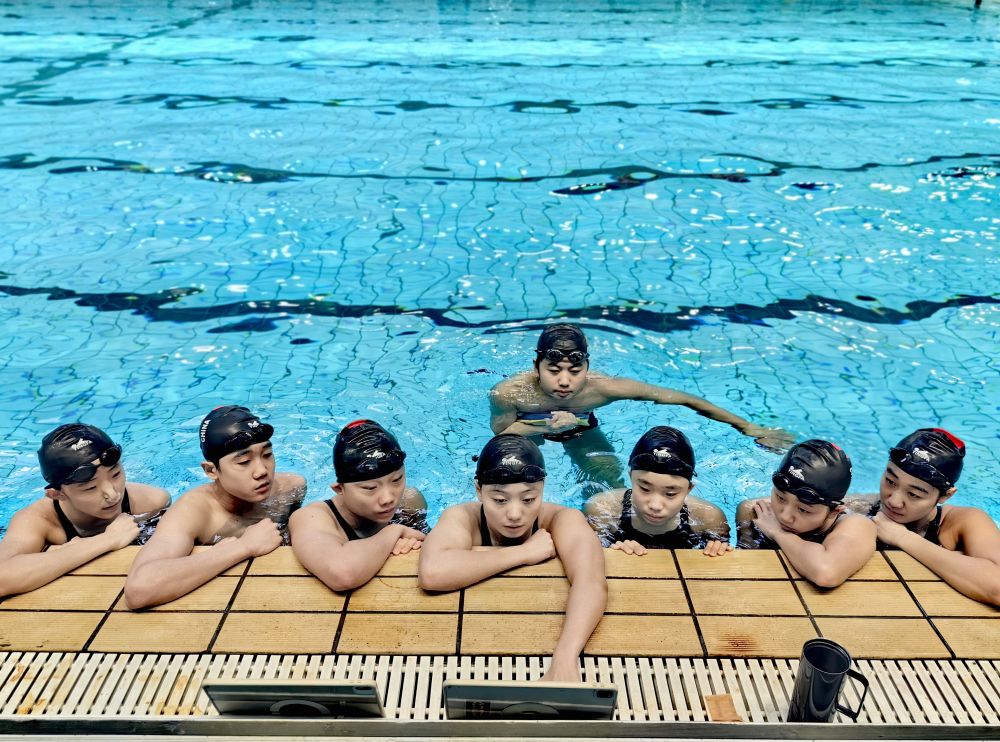 花游训练池碧波荡漾,8名队员如水中芭蕾舞者般精准同步。胡玥琪从水中探身而出,抹去脸上的水珠:“目标是延续北京花游的荣耀。”