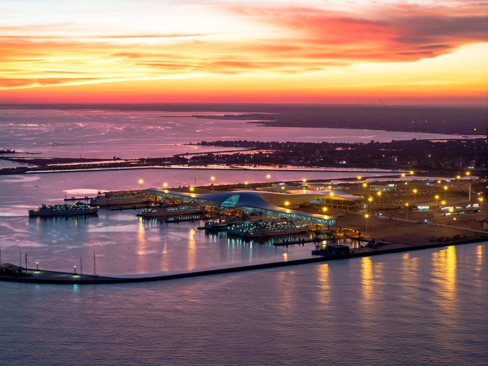 傍晚时分的徐闻港(6月1日摄,无人机照片)。新华社发