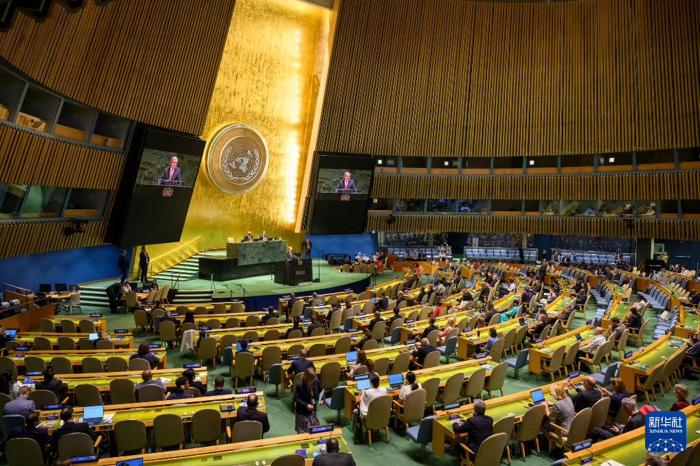 这是6月26日在位于纽约的联合国总部拍摄的联合国大会纪念联合国宪章签署80周年的非正式全体会议现场。新华社发(联合国供图/洛伊·费利佩摄)