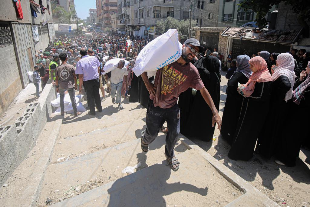 6月26日,巴勒斯坦人在加沙城领取援助物资。新华社发(里泽克·阿卜杜勒贾瓦德摄)