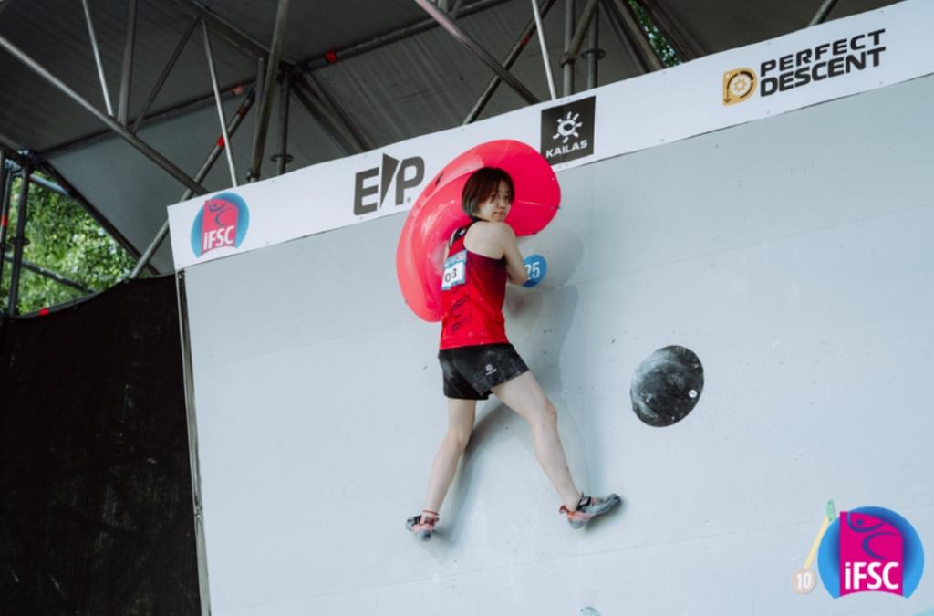 潘愚非在因斯布鲁克站比赛中。图片来自国际攀联官方图集