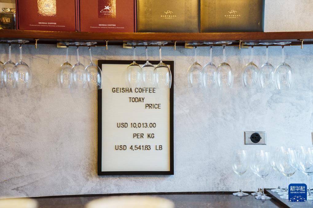 这是3月20日在巴拿马首都巴拿马城的一家咖啡馆拍摄的瑰夏咖啡价格表。新华社记者 许咏政 摄