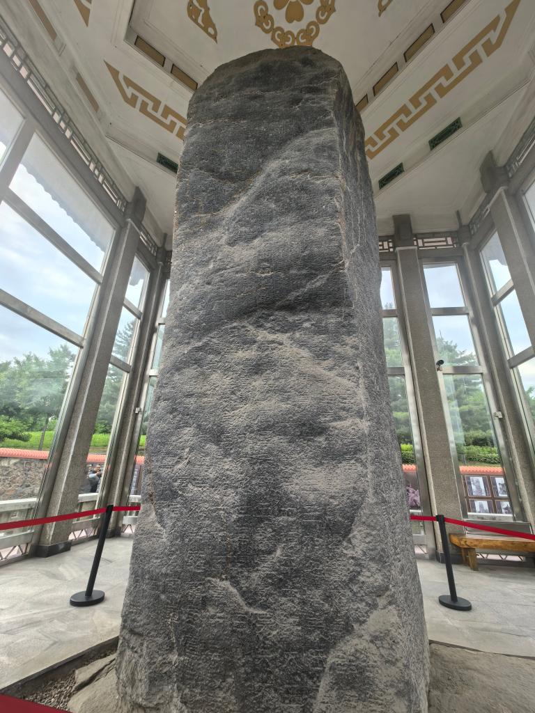 立于公元414年的“好太王碑”,距今1600余年,是中国现存最大的石碑之一。新华社记者 孙鹏程 摄
