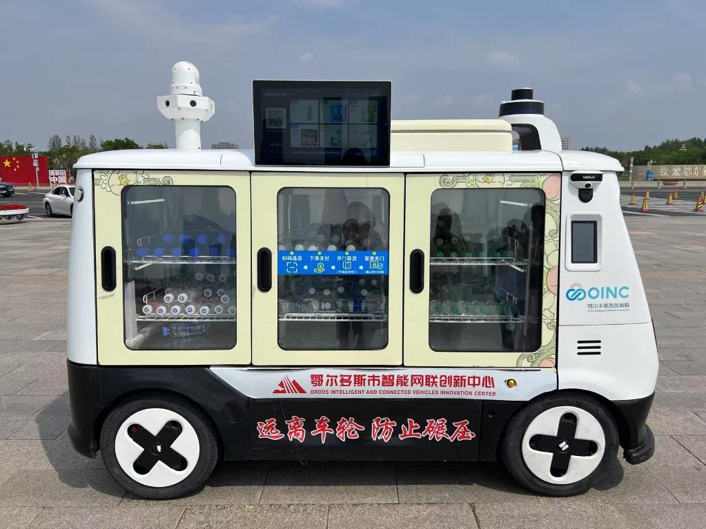 6月27日,鄂尔多斯市康巴什区街头上的无人售卖车。新华社记者安路蒙 摄