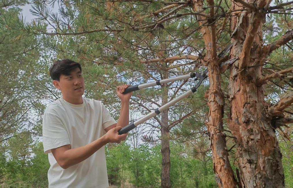 2017年,在爷爷的带领下,石健阳正式投身植绿事业。“过去沙害严重,老一辈治沙人最迫切的是要定住风沙,让地面先绿起来,所以当时的树种主要是生长快的杨树。”石健阳说,“几十年过去,杨树林老化严重,出现大面积枯死的情况。我们现在陆续对老化的林地进行树种更换,补种四季常青、生命周期更长的樟子松,目前已经补种了5万亩。”