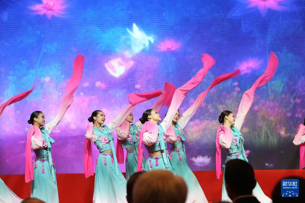 这是6月30日在泰国曼谷举行的庆祝中泰建交50周年招待会上拍摄的文艺演出。新华社发(拉亨摄)